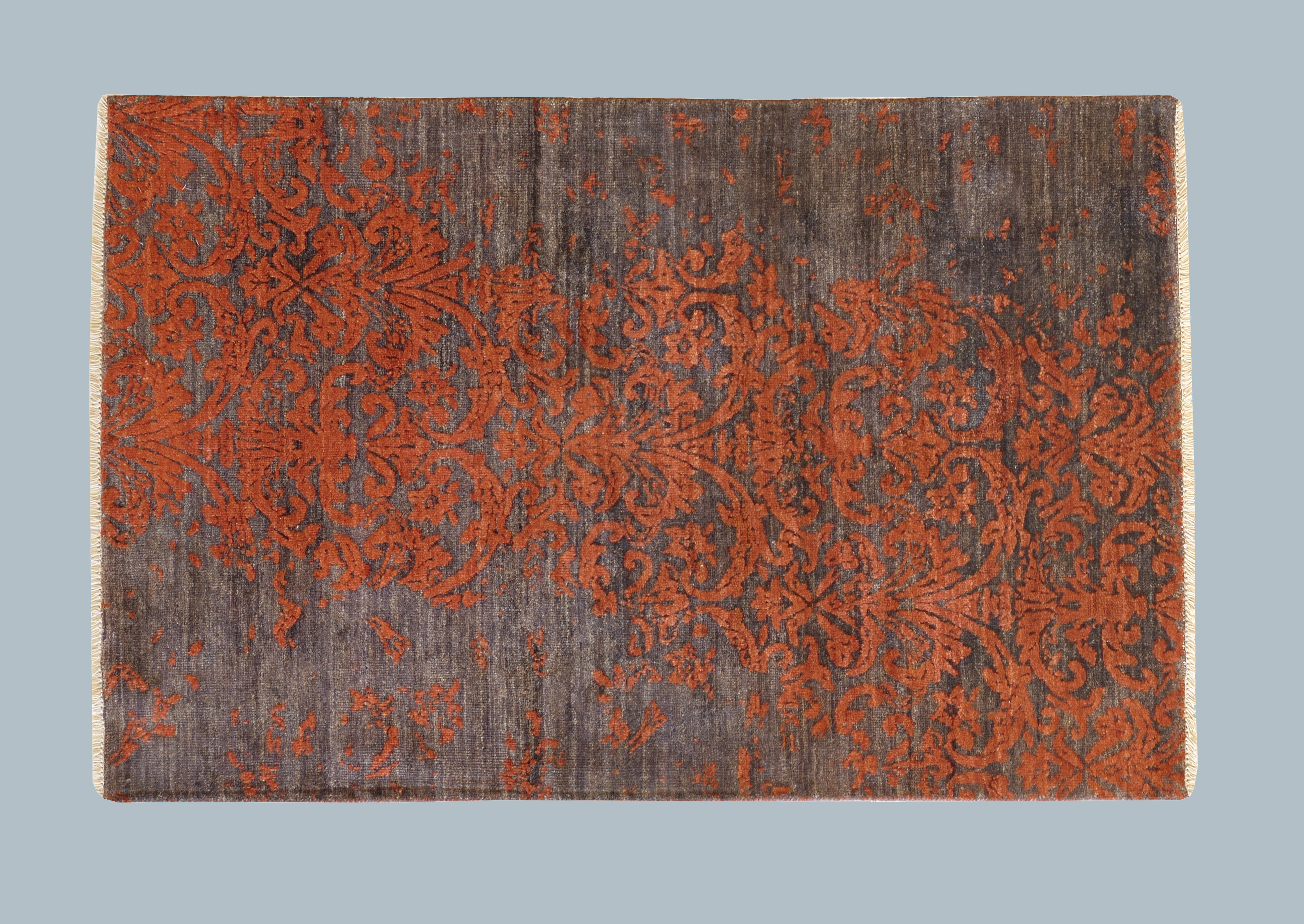 Bhadohinegli ultimi anni è divenuto il centro mondiale della produzione di tappeti. Dedichiamo questa collezione di tappeti moderni città di Bhadohi riprendendo la buona abitudine di dare ai tappeti il nome della zona provenienza. Abbiamo selezionato le migliori lane per far realizzare questacollezione dai colori morbidi e dai ramages che riprendono i disegni dei broccati di Damasco. I tappeti moderni Bhadohi sono di ottima qualità cento nodi persiani ogni pollice, riescono a coniugare bellezza e prezzo; hanno un'anima complessa ed una spiccata personalità; il nodo è di tipo persiano ed il vello è rasato basso, le parti in seta sono giocate in modo discreto e si fanno notare per l'eleganza.