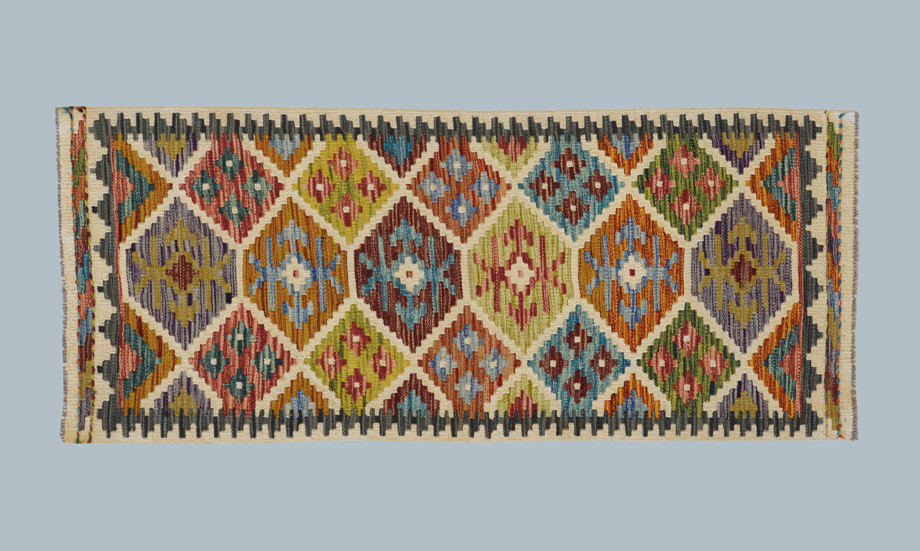 Intrecciati prevalentemente in Afganistan con nuovi colori vivaci o a pastello, riprendono tutti i motivi arcaici tramandati da secoli di generazione in generazione. I kilim nuovi sono una tessitura manuale piana realizzata con tecnica a stacchi; questa prevede che i fili di trama dello stesso colore passino sopra un ordito comune, lo avvolgano e tornino indietro lasciando una fessura che crea una separazione netta tra i blocchi di colore.I diversi blocchi danno origine a disegni geometrici, a questi motivi le tessitrici danno aspetto ornamentale o di talismani simbolici. Ad esempio, i motivi dei kilim nuovi noti con il nome di Elibelinde, sono una figura antropomorfica di dea, simbolo di nascita, spesso rappresentata in forma facilmente riconoscibile, addirittura a volte rappresentata con il figlio in grembo.I kilim nuovi con motivi Bukagi, passatoia per animali, Yin-yang (originari del lontano oriente), Su yolu acqua che corre, Muska amuleto contro il malocchio. Infinità di motivi combinati tra loro in modo fantasioso ed originale danno luogo a forme decorative e colori armonici che attraggono piacevolmente la nostra attenzione.I kilim nuovi appagando il nostro piacere estetico contemporaneo ci tramandano una storia secolare di comunicazione grafica ed una simbologia densa di significati. Ecco altri motivi tipici che anche in queste nuove manifatture ci tramandano una cultura secolare.Motivi ricorrenti nei Kilim nuovi: Cencel ad uncino, motivi a testa di uccello, a scorpione con motivo Akrep, motivi Yildiz, Agaci, Kus, Nazarlik, Kupe, Bukagi, sono inseriti tra le forme romboidali o a medaglione, in bordura o all'interno del campo del kilim.