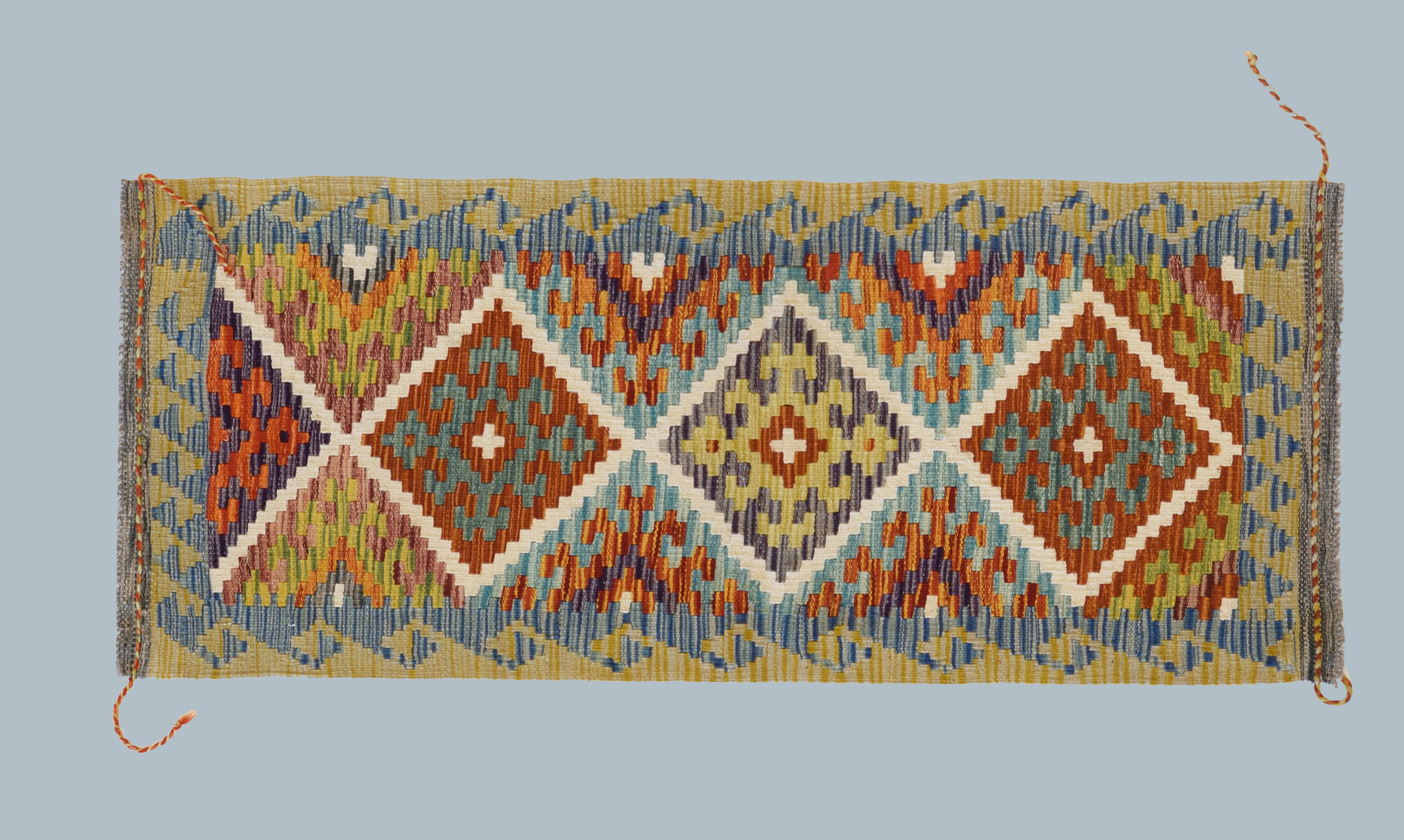 Intrecciati prevalentemente in Afganistan con nuovi colori vivaci o a pastello, riprendono tutti i motivi arcaici tramandati da secoli di generazione in generazione. I kilim nuovi sono una tessitura manuale piana realizzata con tecnica a stacchi; questa prevede che i fili di trama dello stesso colore passino sopra un ordito comune, lo avvolgano e tornino indietro lasciando una fessura che crea una separazione netta tra i blocchi di colore.I diversi blocchi danno origine a disegni geometrici, a questi motivi le tessitrici danno aspetto ornamentale o di talismani simbolici. Ad esempio, i motivi dei kilim nuovi noti con il nome di Elibelinde, sono una figura antropomorfica di dea, simbolo di nascita, spesso rappresentata in forma facilmente riconoscibile, addirittura a volte rappresentata con il figlio in grembo.I kilim nuovi con motivi Bukagi, passatoia per animali, Yin-yang (originari del lontano oriente), Su yolu acqua che corre, Muska amuleto contro il malocchio. Infinità di motivi combinati tra loro in modo fantasioso ed originale danno luogo a forme decorative e colori armonici che attraggono piacevolmente la nostra attenzione.I kilim nuovi appagando il nostro piacere estetico contemporaneo ci tramandano una storia secolare di comunicazione grafica ed una simbologia densa di significati. Ecco altri motivi tipici che anche in queste nuove manifatture ci tramandano una cultura secolare.Motivi ricorrenti nei Kilim nuovi: Cencel ad uncino, motivi a testa di uccello, a scorpione con motivo Akrep, motivi Yildiz, Agaci, Kus, Nazarlik, Kupe, Bukagi, sono inseriti tra le forme romboidali o a medaglione, in bordura o all'interno del campo del kilim.