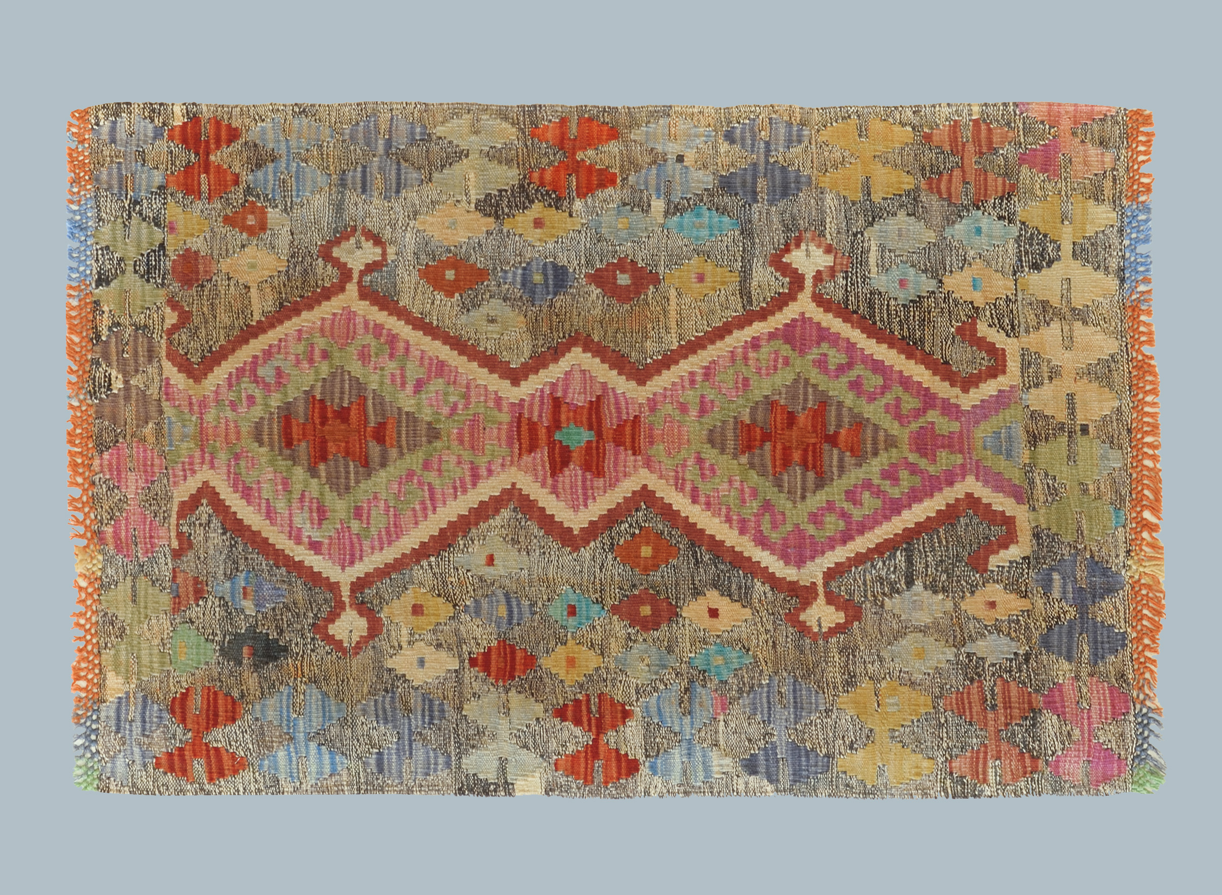 Intrecciati prevalentemente in Afganistan con nuovi colori vivaci o a pastello, riprendono tutti i motivi arcaici tramandati da secoli di generazione in generazione. I kilim nuovi sono una tessitura manuale piana realizzata con tecnica a stacchi; questa prevede che i fili di trama dello stesso colore passino sopra un ordito comune, lo avvolgano e tornino indietro lasciando una fessura che crea una separazione netta tra i blocchi di colore.I diversi blocchi danno origine a disegni geometrici, a questi motivi le tessitrici danno aspetto ornamentale o di talismani simbolici. Ad esempio, i motivi dei kilim nuovi noti con il nome di Elibelinde, sono una figura antropomorfica di dea, simbolo di nascita, spesso rappresentata in forma facilmente riconoscibile, addirittura a volte rappresentata con il figlio in grembo.I kilim nuovi con motivi Bukagi, passatoia per animali, Yin-yang (originari del lontano oriente), Su yolu acqua che corre, Muska amuleto contro il malocchio. Infinità di motivi combinati tra loro in modo fantasioso ed originale danno luogo a forme decorative e colori armonici che attraggono piacevolmente la nostra attenzione.I kilim nuovi appagando il nostro piacere estetico contemporaneo ci tramandano una storia secolare di comunicazione grafica ed una simbologia densa di significati. Ecco altri motivi tipici che anche in queste nuove manifatture ci tramandano una cultura secolare.Motivi ricorrenti nei Kilim nuovi: Cencel ad uncino, motivi a testa di uccello, a scorpione con motivo Akrep, motivi Yildiz, Agaci, Kus, Nazarlik, Kupe, Bukagi, sono inseriti tra le forme romboidali o a medaglione, in bordura o all'interno del campo del kilim.