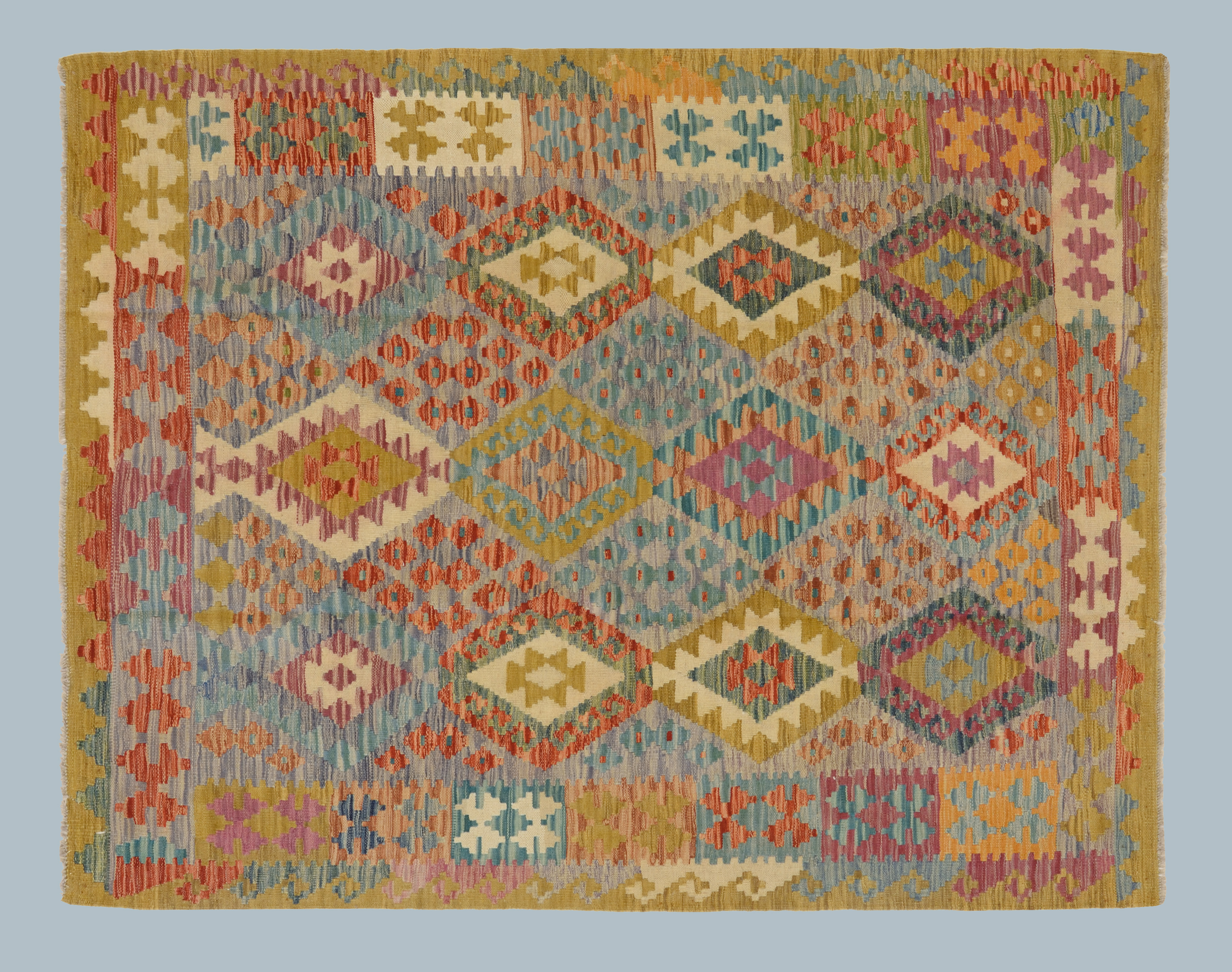 Intrecciati prevalentemente in Afganistan con nuovi colori vivaci o a pastello, riprendono tutti i motivi arcaici tramandati da secoli di generazione in generazione. I kilim nuovi sono una tessitura manuale piana realizzata con tecnica a stacchi; questa prevede che i fili di trama dello stesso colore passino sopra un ordito comune, lo avvolgano e tornino indietro lasciando una fessura che crea una separazione netta tra i blocchi di colore.I diversi blocchi danno origine a disegni geometrici, a questi motivi le tessitrici danno aspetto ornamentale o di talismani simbolici. Ad esempio, i motivi dei kilim nuovi noti con il nome di Elibelinde, sono una figura antropomorfica di dea, simbolo di nascita, spesso rappresentata in forma facilmente riconoscibile, addirittura a volte rappresentata con il figlio in grembo.I kilim nuovi con motivi Bukagi, passatoia per animali, Yin-yang (originari del lontano oriente), Su yolu acqua che corre, Muska amuleto contro il malocchio. Infinità di motivi combinati tra loro in modo fantasioso ed originale danno luogo a forme decorative e colori armonici che attraggono piacevolmente la nostra attenzione.I kilim nuovi appagando il nostro piacere estetico contemporaneo ci tramandano una storia secolare di comunicazione grafica ed una simbologia densa di significati. Ecco altri motivi tipici che anche in queste nuove manifatture ci tramandano una cultura secolare.Motivi ricorrenti nei Kilim nuovi: Cencel ad uncino, motivi a testa di uccello, a scorpione con motivo Akrep, motivi Yildiz, Agaci, Kus, Nazarlik, Kupe, Bukagi, sono inseriti tra le forme romboidali o a medaglione, in bordura o all'interno del campo del kilim.