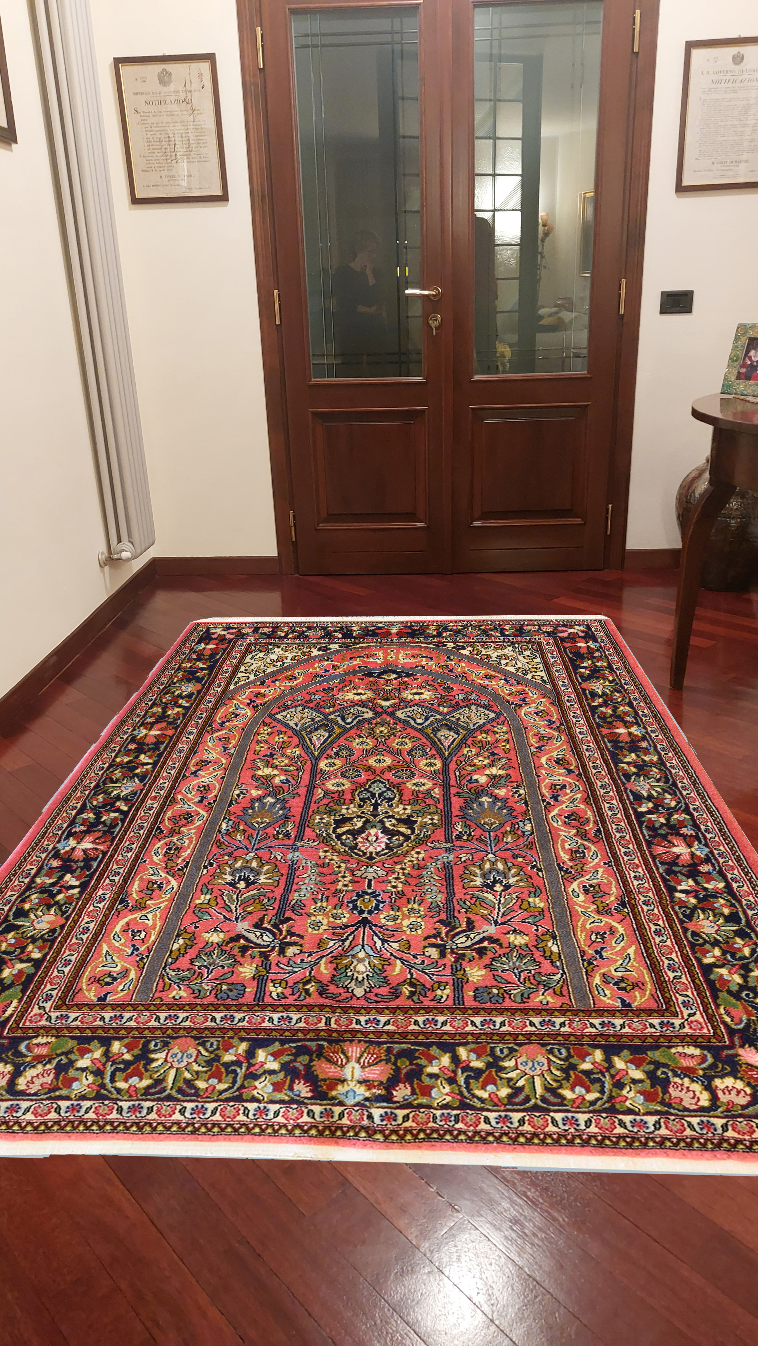 Kum| Famoso tappeto persiano che ha raggiunto la sua maggior diffusione negli anni '80. All'epoca venivano definiti Kum Koork Arselani: Koork lane pregiate del sottocollo dell'agnello, Arselani Laboratorio manifatturiero della città di Goom. In realtà si tratta di un bel pezzo tradizionale con disegno a Mhirab ben annodato con lane pregiate. Non ho mai avuto il Piacere di conoscere MR. Arselani. ( attenzione al prezzo!)